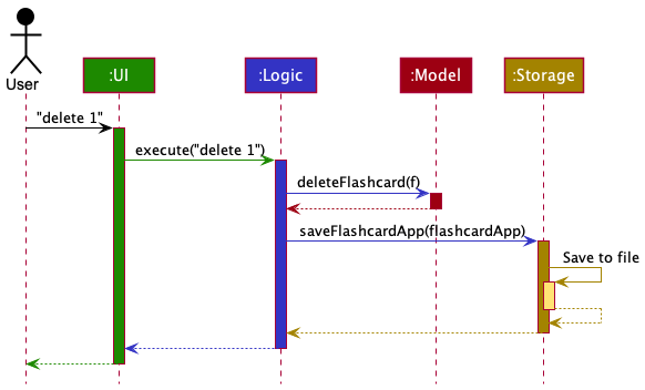 The Sequence Diagram below shows how the components interact with each other for the scenario where the user issues the command delete 1.