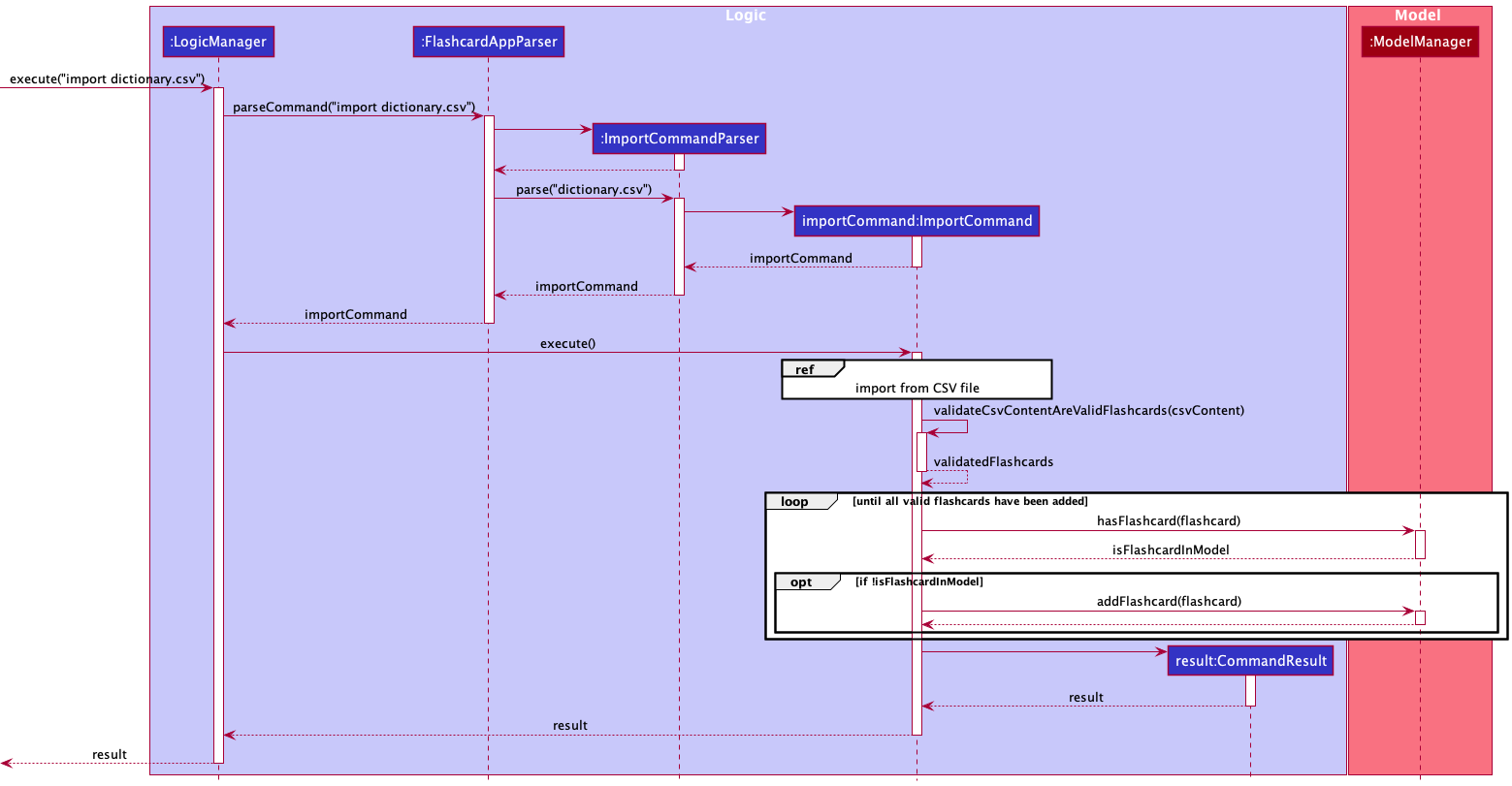 Expected: All the flashcard data infile.csvis successful imported as flashcards in the application, and displayed in the current list of flashcards. Note that the duplicated flashcards set up above in the prerequisites will not be imported into the application. - Test case: